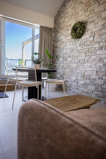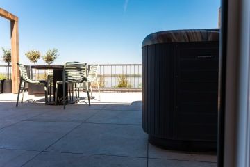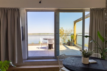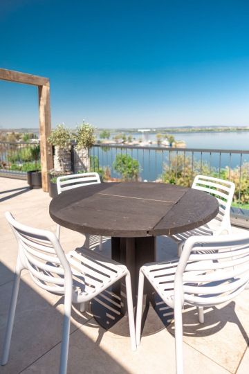 Každý apartmán má vlastní prostornou terasu se sezením, lehátky a úchvatným výhledem na Novomlýnské nádrže a Yacht klub Pavlov. Terasy nabízí dostatek soukromí, ale umožňují i propojení více apartmánů vedle sebe. Spodní tři apartmány navíc doplňuje soukromá vířivka, ideální pro odpočinek při snídani nebo sklence vína s výhledem.