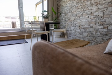 Chystáte se přijet s přáteli nebo větší rodinou? Žádný problém. Dva až tři apartmány, buď v horním, nebo dolním patře, vám můžeme jednoduše propojit přes vrátka na terasách a vytvořit si tak společný, průchozí prostor. Užijte si společné chvíle s výhledem na Nové Mlýny a soukromí, které si nastavíte podle sebe.